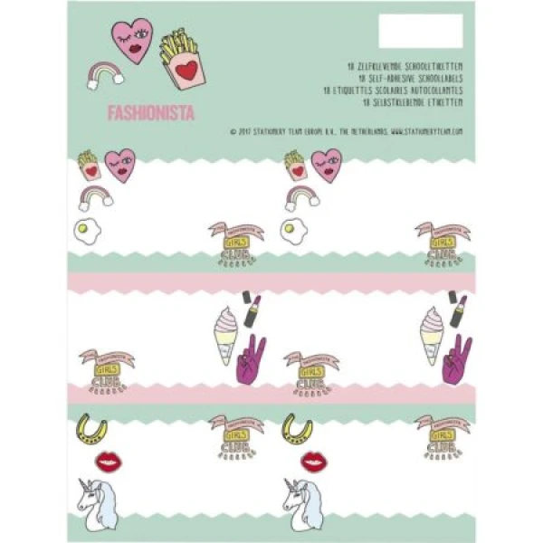 Etiketten Fashionchick Girls, set van 18 stuks.