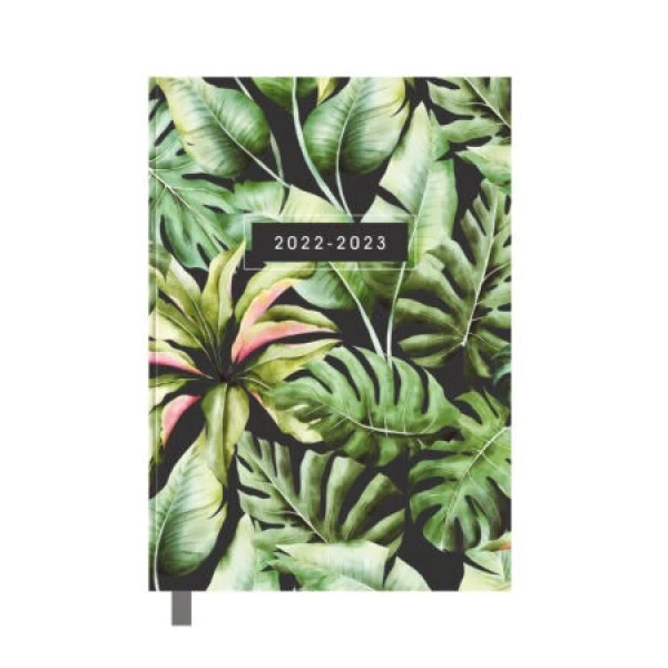 Klein maar fijn dat geldt zeker voor deze agenda. Deze agenda in (+-) A7 formaat heeft een harde cover met een vrolijke botanische print van bladeren op een donkere achtergrond.