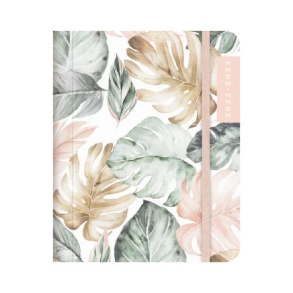 Stijlvolle organizer met mooie botanische print op een lichte achtergrond. De organizer heeft een zgn. ‘verborgen ringband’. De ringband wordt bedekt door de cover. De organizer wordt dichtgehouden door een elastieken band en heeft een verplaatsbare bladwijzer. De indeling van de organizer is één week over twee pagina’s en heeft 5 transparante insteekhoesjes met tien mooie giftcards. Achterin zitten nog 3 handige transparante opberghoesjes. Deze organizer loopt van eind mei 2022 tot begin augustus 2023.