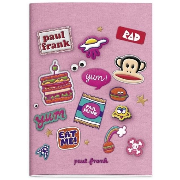 Schrift lijn van het populaire merk Paul Frank. Het roze A4 schrift heeft grappige plaatjes en natuurlijk staat ook het aapje Julius op de voorkant weergegeven. Het Paul Frank schrift heeft 40 bladzijdes, deze hebben lijntjes en een kantlijn.