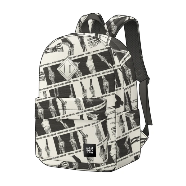 Deze zwart-witte Graphic X-ray Basics rugzak, die geschikt is voor studenten, actieve personen of reizigers, is een draagbaar accessoire dat perfect is om must-have benodigdheden netjes in te verpakken.