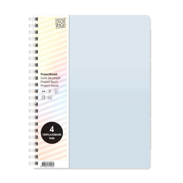 Het Projectboek A4 4tabs SOHO Pastel blauw helpt je je werk georganiseerd en overzichtelijk te houden, zodat je altijd alles snel terug kunt vinden.