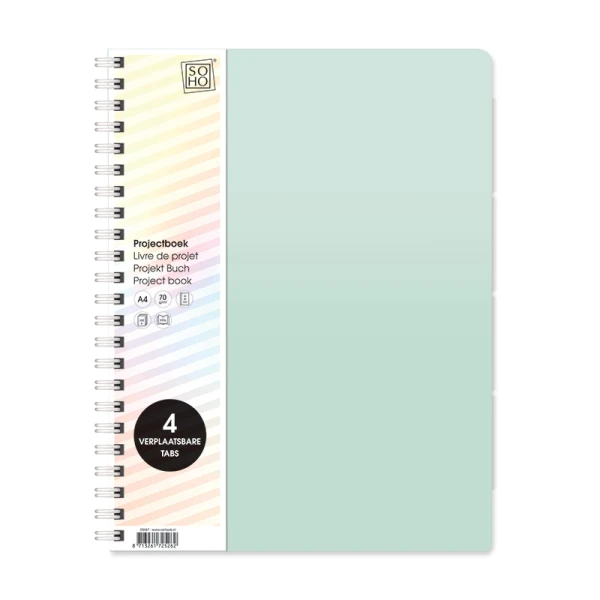 Het Projectboek A4 4tabs SOHO Pastel groen helpt je je werk georganiseerd en overzichtelijk te houden, zodat je altijd alles snel terug kunt vinden.