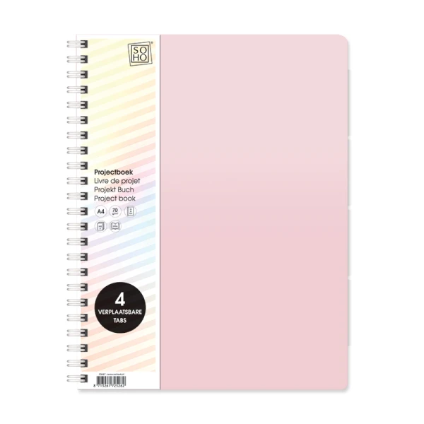 Het Projectboek A4 4tabs SOHO Pastel roze helpt je je werk georganiseerd en overzichtelijk te houden, zodat je altijd alles snel terug kunt vinden.
