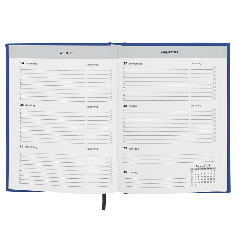 โข Kenmerken: Stevige kaft en overzichtelijke weekplanning