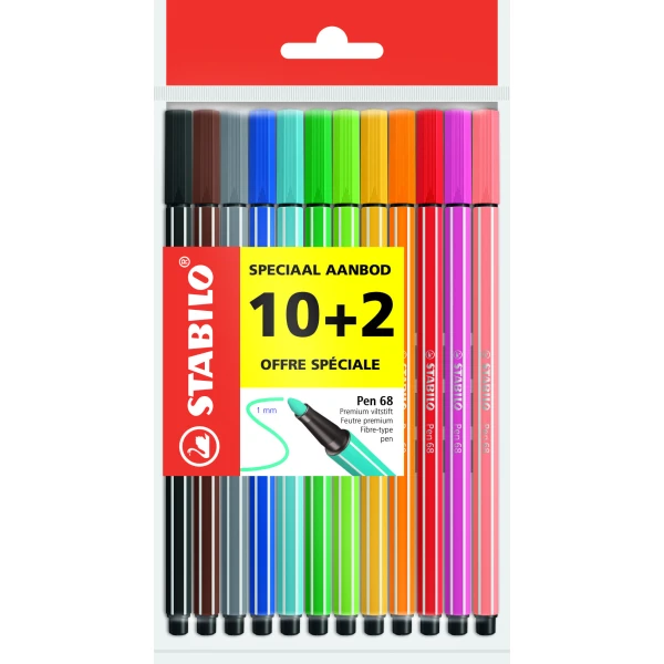 Stabilo fineliner point68 basis kleuren etui 12 stuks