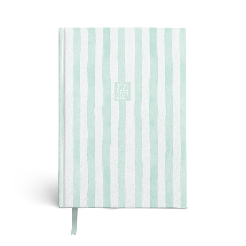 Agenda A5 26/27 Stripes in de kleur groen. Deze agenda heeft een A5 formaat en een gewatteerde harde kaft.