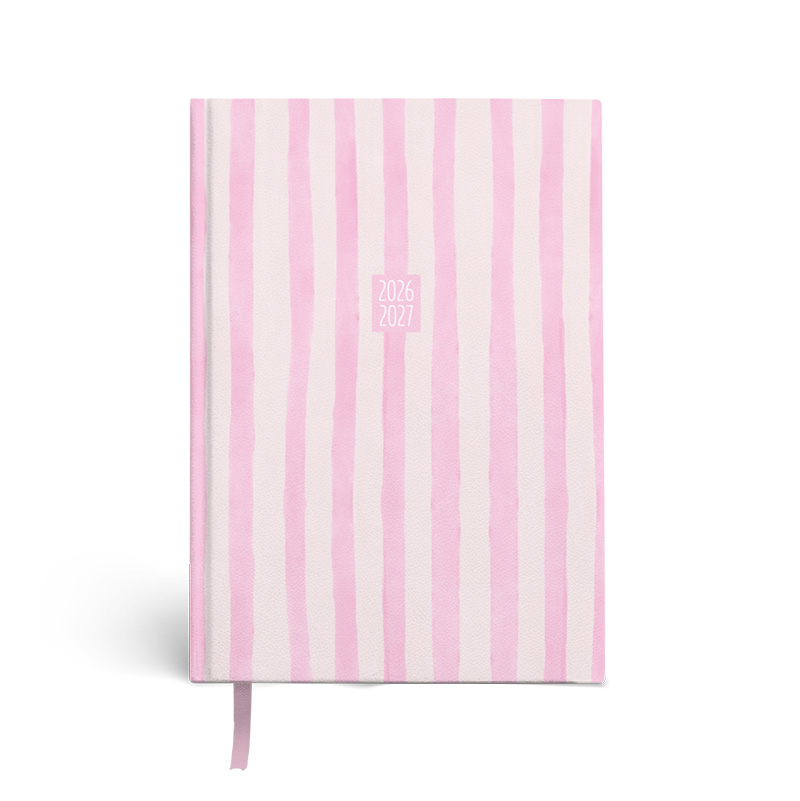Agenda A5 26/27 Stripes in de kleur roze. Deze agenda heeft een A5 formaat en een gewatteerde harde kaft.
