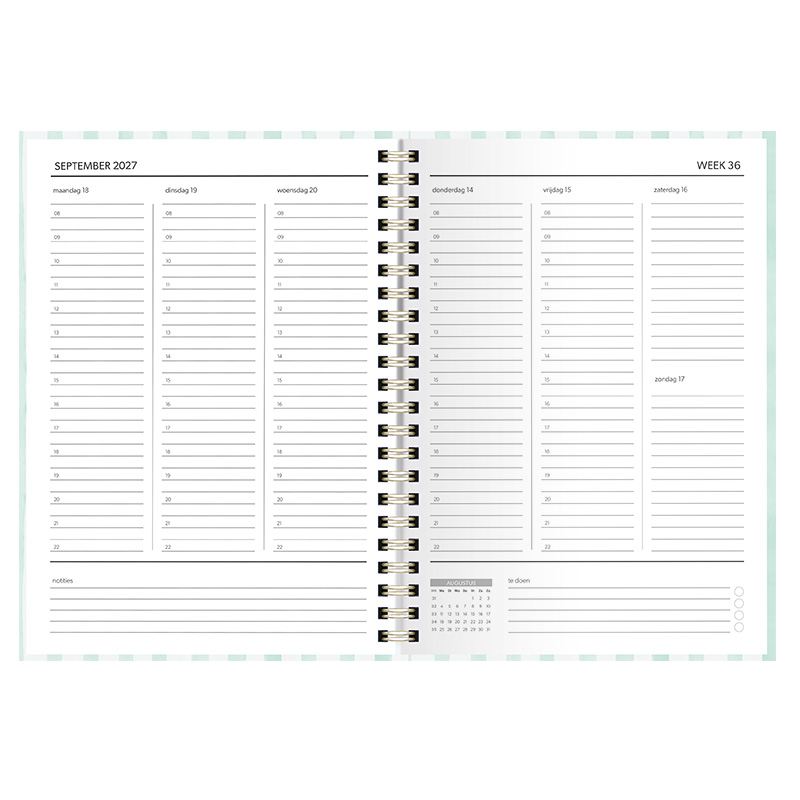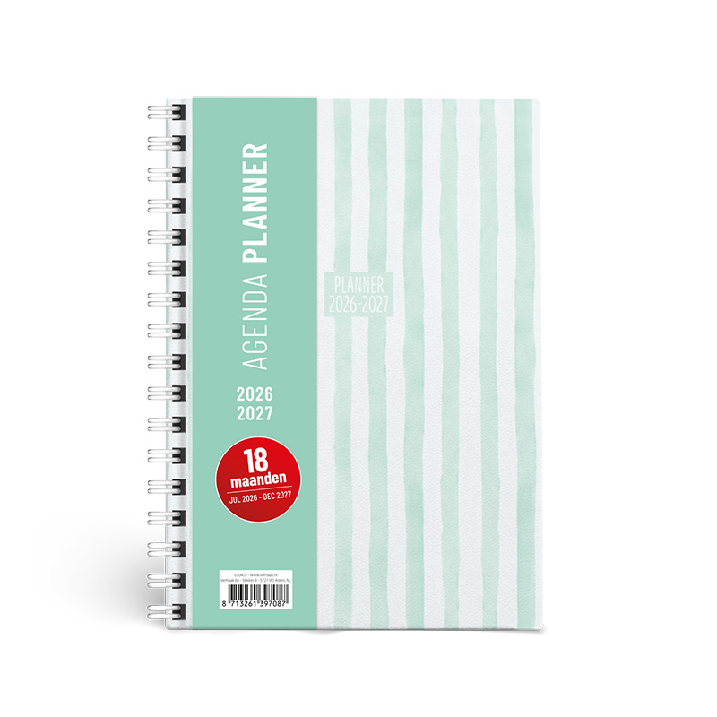 Planner spiraal Stripes in de kleur groen met een afmeting van 22x16cm.